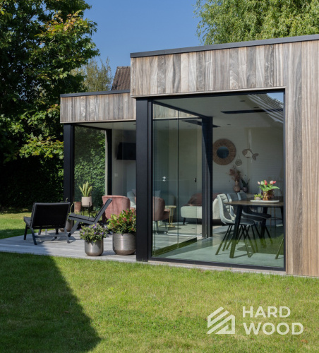 Лофт вырос из индустриальной эстетики: прямые линии, понятный каркас, фактура материалов на первом плане. В беседке это выражается в открытых балках, строгой геометрии, крупном остеклении и функциональности каждой детали. Никакой визуальной «тяжести» — только то, что работает на комфорт и стиль.