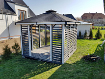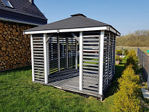 Все элементы постройки окрашиваются в 2 слоя с промежуточной и финишной шлифовкой. Стандартная краска Teknos Akrylin (цвет на выбор) по каталогу RAL Classic – более 1000 цветов. Масло, пропитка или другие производители красок – рассчитываются индивидуально