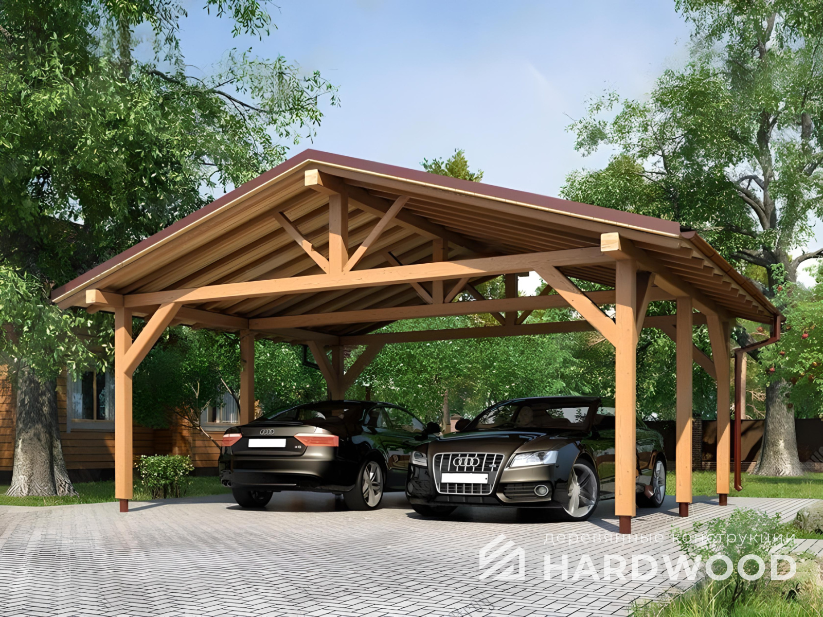Деревянные навесы для автомобилей по акции
